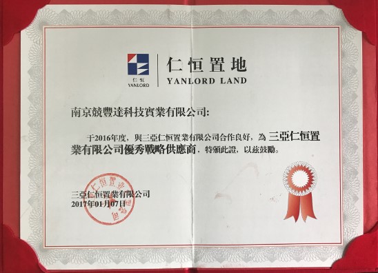 新年伊始,我公司再传捷报,由我公司承接的三亚海棠湾仁恒度假村项目皇冠假日酒店及产权酒店智能项目正在如火如荼的进行之中,我公司项目人员的辛勤工作得到的三亚仁恒公司上下一致的好评,在近日三亚仁恒置业有限公司举办的2017迎新晚会上,我公司被评为三亚仁恒置业有限公司优秀战略供应商,会上仁恒公司领导亲自向我公司董事长杜卫国先生颁发的奖牌与证书。此次获奖标志着我公司的施工更加规范化,合理化、优质化,为公司其他项目树立了标杆,也为公司2017年打响了开门红!